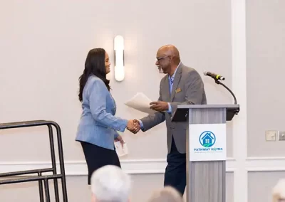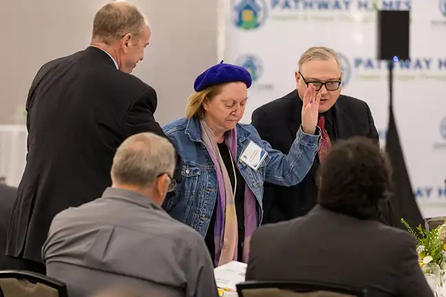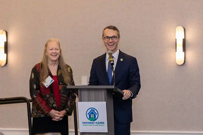 homelessness. It featured speakers including Pathway clients, civic leaders, and its awardees. Nearly 300 people attended the annual event in support of Pathways—a nonprofit providing mental health services starting with safe, stable housing to individuals marginalized by poverty and inequity.