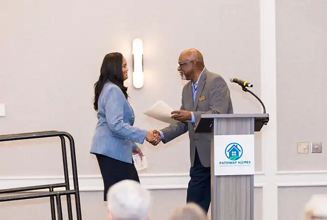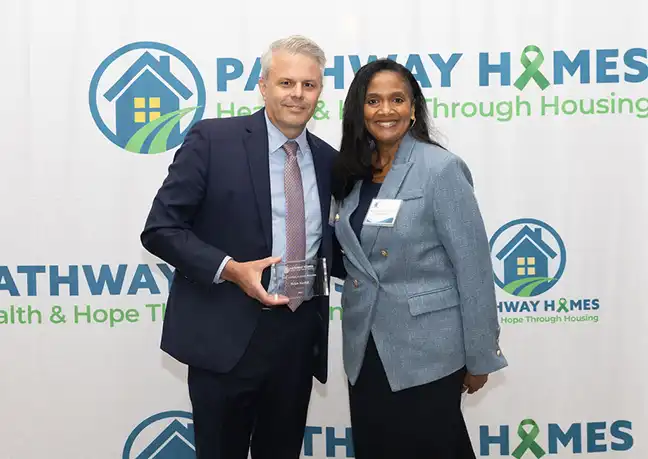 Pathway Homes recognized the dedication, leadership, and support of Del. David Bulova, Virginia Housing Alliance Executive Director Brian Koziol, and Virginia Housing. The awards took place during Pathway Homes’ Steps to Pathways Breakfast on October 3 at the Fairview Marriott for their efforts to ensure vulnerable members of the community have needed services and a place to call home.